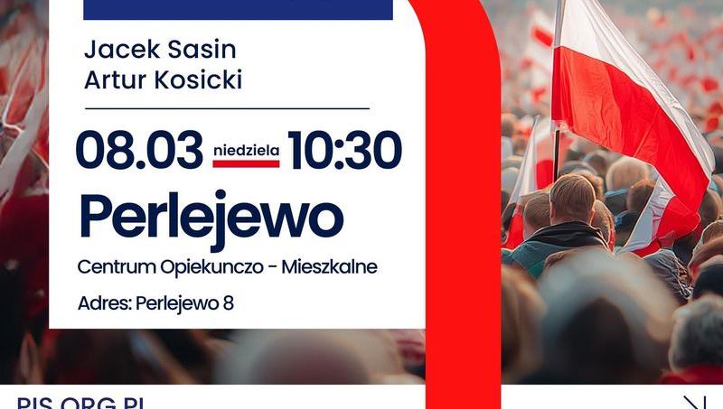 W Perlejewie odbędzie się spotkanie z udziałem posła Jacka Sasina, byłego wicepremiera i ministra aktywów państwowych, oraz Artura Kosickiego – radnego Sejmiku Województwa Podlaskiego i marszałka województwa podlaskiego w latach 2018–2024.