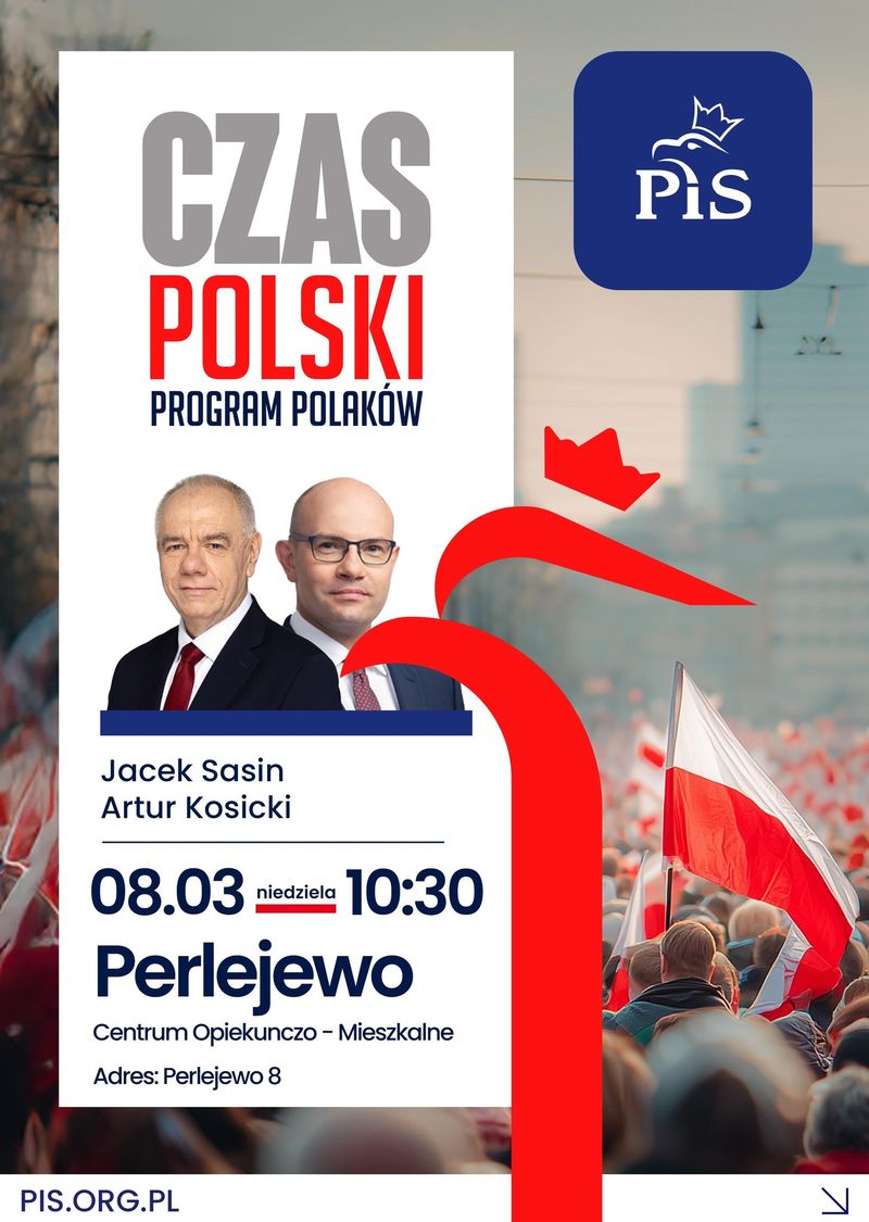 Podczas wydarzenia zapowiedziano rozmowę o sprawach istotnych zarówno dla gminy, jak i dla całej Polski. Spotkanie organizowane jest w ramach cyklu wizyt i rozmów z mieszkańcami regionu, których celem jest omówienie bieżących wyzwań lokalnych oraz ogólnokrajowych kwestii politycznych.Spotkanie odbędzie się w niedzielę, 8 marca, o godz. 10.30 w Centrum Opiekuńczo-Mieszkalnym w Perlejewie. Wydarzenie ma charakter otwarty dla mieszkańców.
