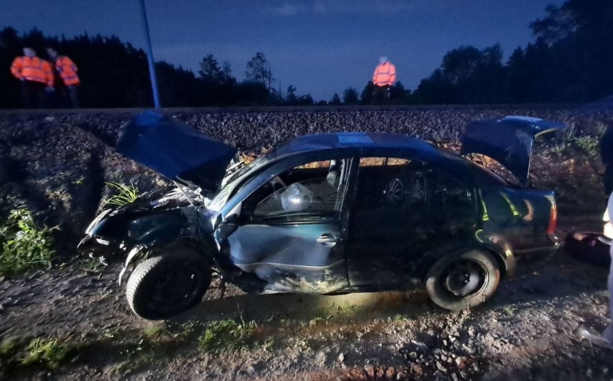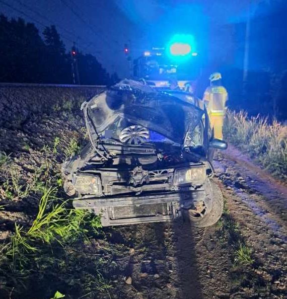 21-latek uderzył w słup trakcji elektrycznej i jego Volkswagen utknął na torowisku. Kierujący nie dostosował prędkości do warunków ruchu na drodze szutrowej, stracił nad nim panowanie, po czym zjechał z drogi i uderzył w elementy infrastruktury kolejowej. Interweniujące służby zatrzymały ruch kolejowy oraz usunęły pojazd z nasypu. Młody kierowca został ukarany mandatem w wysokości 5000 złotych i 8 punktów karnych.