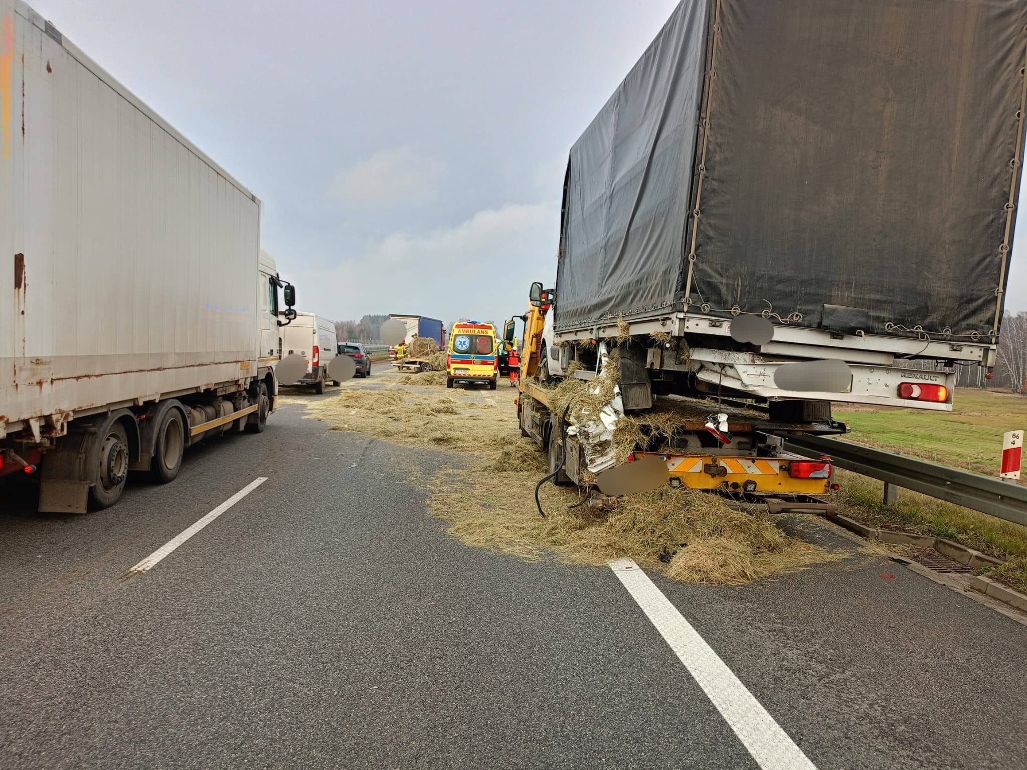 W miejscu zdarzenia ruch odbywa się obecnie tylko jednym pasem jezdni. Na miejscu pracują służby ratunkowe i policja, które zabezpieczają teren i kierują ruchem.Służby apelują do kierowców o zachowanie szczególnej ostrożności, zmniejszenie prędkości oraz stosowanie się do wydawanych poleceń.